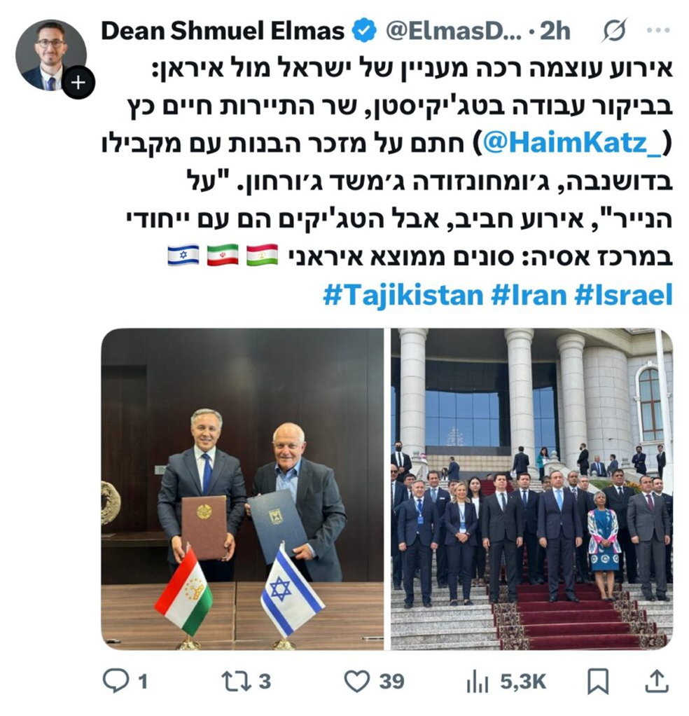 Также нет никакой информации о деталях визита, когда состоялся и какие соглашения были достигнуты между представителями Израиля и Таджикистана.